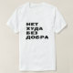 Der Text entwirft nur russischen Text: Н т х е а у , zu dem jede Wolke übersetzt werden kann: jede Wolke hat einen silbernen Faden. Sie können diesen weißen T - Shirt anpassen, um ihn zu verändern, um ihm ein einzigartiges Aussehen zu verleihen. T - Shirt mit einem russischen Satz darauf.