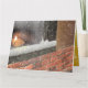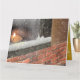 雪の降る窓辺にキャンドルの温かい炎が見えるカード。