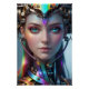 テクノロジーと人間性が色彩のシンフォニーの中で融合する、鮮やかな未来へ。このデジタル作品は、繊細で生命力にあふれた美しさと、複雑な虹色のメカニズム、そして輝くティールブルーの瞳を併せ持つサイバネティックな肖像を描いています。金属パーツに反射する虹色の光が、希望、神聖さ、そしてハイテクなエレガンスを感じさせます。