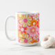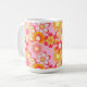 ピンク色が愛らしいレトロな黄色やオレンジ色のお花がたくさんの、素敵なコーヒーマグカップ!プレゼントにも