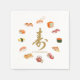 At the center of the design, “寿” is beautifully displayed in elegant brushstroke style, with the phrase “A Life of Blessings” underneath. Surrounding it is a charming circle of hand-drawn sushi illustrations, bringing a playful and flavorful touch to the overall design.