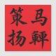 Vier große chinesische Schriftzeichen sind in einem Zwei-mal-Zwei-Block angeordnet. Fette Pinsel-Kalligrafie: Jedes Schriftzeichen zeigt Dynamik und selbstsichere, entschlossene Handarbeit. Ce ma yang bian. Die wörtliche Übersetzung des Ausdrucks lautet "Das Pferd mit einer Peitsche unterrichten".