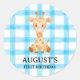 Perfect for baby's first birthday, this sticker features an adorable giraffe with a charming watercolor check background.