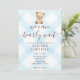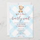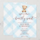 002 Cerulean Blue Teddy Bear Gingham Baby Shower Einladung