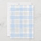 Diese editierbare Baby-Shower-Einladung zeigt einen süßen illustrierten Storch, der der hellen Boho-Sonne vorausfliegt. Der Hintergrund ist ein weicher Wasserfarb-Karo-Hintergrund. Verwendete Farben: 003 Kobalt & 020 Nebel