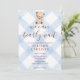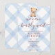 003 Kobaltblaue Teddybär-Gingham-Babyparty Einladung