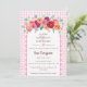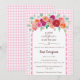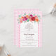 Soft watercolor roses bloom gently atop a graceful white scallop arch that frames this “A Little Wildflower is on the way” baby shower invitation. The word “Wildflower” is set in delicate script, finished with a dainty heart line swash that adds a tender flourish. Behind it all, a soft watercolor gingham backdrop lends a touch of timeless charm, creating a baby shower invitation that feels fresh, romantic, and beautifully heartfelt.