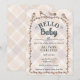014 Latte Watercolor Gingham Birds Baby Shower Einladung