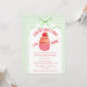 At the center of this baby shower invitation sits an adorable cupcake crowned with a sweet strawberry. A soft watercolor gingham backdrop and a delicately tied bow complete the look, creating a celebration that feels warm, whimsical, and beautifully inviting.
