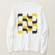 Ein gewagtes geometrisches Design aus gekrümmten Winkelformen in abwechselnden Richtungen mit abwechselnden Farben.