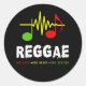 Reggae Soundwave: Fett REGGAE Text. Goldene Schallwelle mit grünen und roten Musiknoten. Bildtext: "Eine Liebe, ein Herz, ein Schicksal" in Rot, Grün, Gold. Dieses Bild vermischt die Symbolik der Musik mit einem umfangreichen Zitat des Königs von Reggae und symbolisiert die lebendige Musik, den Rhythmus und die Lebensweise, die Roots/Reggae-Musikgenre, Reggae-Kultur, Jamaika und die Karibik-Insel identifiziert