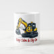 Cute smiling excavator mascot with Keep Calm and Dig On quote. A perfect gift for construction workers, heavy equipment operators & kids who love diggers. Great on mugs & drinkware!
