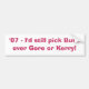 '07 - Ich würde noch Bush über Gore oder Kerry Autoaufkleber