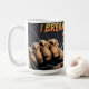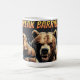 Empieza tu día con poder. Esta taza muestra a un oso musculoso rompiendo la imagen de un golpe. Energía visual para culturistas, entrenadores o cualquier guerrero del gym.