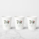 An elegant and simple tropical 70th birthday design that is sophisticated and classy, this paper party cup has palm fronds, hibiscus, fig blossoms, anthuriums, bird of paradise, and orchids adorn the number "70" with beauty and elegance for this special milestone birthday celebration. The text template can be personalized with the guest of honor's name.