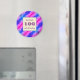 Create an eye-catching favor for a milestone birthday celebration with this refrigerator magnet. The background feature bright blue and neon pink, abstract stripes moving diagonally across this vibrant round magnet. A square in the center provide a solid background for "and still smiling", your age, and name. All text can be easily personalized to reflect your name, any age and gefühl.