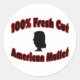 Hillbilly profile sporting a image perfect mullet mit der Phrase "100% Fresh Cut American Mullet" oben und unten geschrieben in geschwungenen schwarz-roten Schriftart.