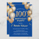 100. Geburtstag Blue and Gold Glitzer Balloons Einladung
