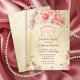 Mit dieser Vintagen, blumengeschmückten Einladung laden Sie Ihre Gäste stilvoll zu einer 100. Geburtstagsfeier ein. Dieses elegante Design-Template zeichnet sich durch Aquarellfarben-Rose in Rosa- und Pfirsichtönen aus, mit grünen Blätter auf goldfarbenem Hintergrund. In der Mitte ist eine große Zahl "100th" in der modernen rosa Typografie. Im Folgenden finden Sie Ihre Party-Daten, um sie zu personalisieren. Die Rückseite der Karte ist ein passendes goldenes Schimmer-Muster. Designed by artist ©Susan Coffey.