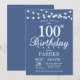 100. Geburtstag Einladung mit String Lights.Blue Background. Männer oder Frauen zum Geburtstag. 13. 15. 16. 18. 20. 21. 30. 40. 50. 60. 70. 80. 90. 100. Jegliches Alter.