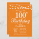 100. Geburtstag Einladung mit String Lights.Orange Hintergrund. Männer oder Frauen zum Geburtstag. 13. 15. 16. 18. 20. 21. 30. 40. 50. 60. 70. 80. 90. 100. Jedes Alter. Für weitere Anpassungen klicken Sie bitte auf die Schaltfläche "Anpassen" und verwenden Sie unser Designwerkzeug, um diese Vorlage zu ändern.