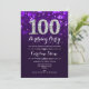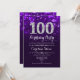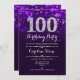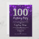Einladung zum 100. Geburtstag. Elegantes lila Design mit Imitaten Glitzer Silber. Erwachsener Geburtstag. Mit Diamanten und Drehbuch Schriftart. Männer oder Frauen laden ein. Ideal für eine stilvolle Geburtstagsfeier. Nachricht, wenn Sie weitere Anpassungen benötigen.