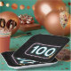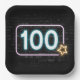 Glühendes Neonmarquee-Schild mit einem Stern an einer dunklen Ziegelmauer für die 100. Geburtstagsparty