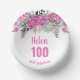 100. Geburtstag rosa Aquarellblüte Pappteller