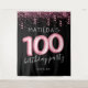 Niedliche 100. Geburtstag Party Foto Stand Hintergrund mit einem trendigen schwarzen Hintergrund, funkelnden Glitzer und Konfetti, 100 rosa Hellium Ballons, ihren Namen und Datum.