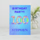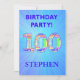 100. Geburtstagsfeier Einladung. Fügen Sie einen Namen und Ihre Details hinzu, um eine fantastische Geburtstagsfeier-Einladung zu machen. Die Zahlen sind aus Wörtern gemacht, die mit Geburtstagen verbunden sind, um jeden in die Stimmung zu bringen!