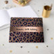 Elegant, glamourös und feminin für eine 100. Geburtstagsfeier mit braunem, goldfarbenem und schwarzem Leopardenprint, mit goldenen Konfetti dekoriert. Vorlage für einen Namen und Alter 100. Ein Imitat bronze metallisch aussehende Band. Schwarze handgeschriebene Schrift, Buchstaben. Spine: Fügen Sie Ihren eigenen Text hinzu.