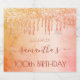 Eine Weinflasche für eine mädchenhafte und glamouröse 100. Geburtstagsfeier mit den Mädchen. Ein Imitat Rose Gold, Korallen, rosa und golden rustikalen Marmor Hintergrund mit einem eleganten Imitat Rose Gold Glitzer Tropfen, Farbe Tropfen aussehen. Personalisieren und fügen Sie einen Namen, Alter 100 und ein Datum. Der Name ist mit einem großen, modernen, handgeschriebenen Stil geschrieben. Dunkle Korallenbriefe. Um die Swashes behalten, löschen Sie nur den Beispielnamen, verlass die Leerzeichen oder Emoji's vor und nach dem Namen.