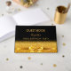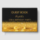 Elegant, klassisch, glamourös und feminin. Ein Imitat goldfarbenes Band mit einem Bogen mit goldenen Imitat Glitzer und Funkeln, ein bisschen Bling und Luxus. Ein Gästebuch für eine 100. Geburtstagsfeier. Der Name ist mit goldenem handgeschriebenem Stilskript geschrieben. Schwarzer Hintergrund. Rücken: Vorlage für Ihren eigenen Text.