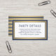Kompliment marineblaue und goldene Party Einladungen und bieten wichtige Informationen für die Gäste mit eleganten passenden Einschließkarten. Alle Formulierungen auf dieser Vorlage sind einfach zu anpassen für jeden Anlass. Diese Karte enthält die Feste Details Ihrer Wahl wie Anfahrtsbeschreibung, Website, besondere Wünsche, Unterkünfte, Empfang, uAwg, etc. Das Design besticht durch eine klassische Folie aus Marineblau, Weißgold und Imitat, moderne Streifen und stilvolle Vintage Deko-Typografie. Bitte beachten Sie, dass Gold farblich gedruckt ist, nicht metallische Folie.