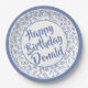 100. Party Random Number Pattern Blau/Weiß Pappteller