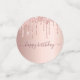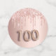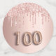 Girly und feminine Confetti für eine 100. Geburtstagsfeier. Eine Rose Gold Imitate metallisch, Folie aussehend mit Imitaten Rose Gold Glitzer Tropfen. Personalisieren und fügen Sie ihren Namen/Text hinzu. Dunkle Rose goldfarbene Buchstaben. Einige Konfetti-Chips mit Namen und Datum, andere mit der Nummer 100 geschrieben mit einem Ballon Stil Schriftart, und mit dem Text Happy Birthday.