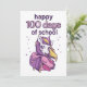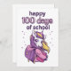 Niedliches Einhorn mit einem Rucksack und einem großen Stift mit dem Zitat "Happy 100 days of school". Alles Gute zum 100. Schultag oder zum 100. Kindergarten.
