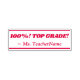 Diese ermutigende Gummi-Briefmarke-Design enthält die inspirierend Feedback-Nachricht "100%! TOP GRADE!" und den Namen eines Lehrers oder Lehrers. Es könnte von einem Lehrer, Pädagogen oder Tutor verwendet werden, um anzuzeigen, dass ein Schüler gut abgeschnitten hat.