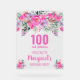Elegantes Design für eine 100. Geburtstagsfeier mit rosa "100 und fabelhaft" und einem geschriebenen Namen, der von einer femininen Aquarell-Blume auf weißem Hintergrund verziert wird. Anpassen von Alter, Text, Name und Hintergrundfarbe.
