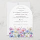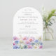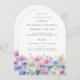 Elegant watercolor asters create a floral border at the bottom of this arch-shaped birthday invitation. The soft pastel purple, pink blue and white flowers are the September birthday month flower making this the perfect theme for your September birthday.