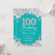 100th Geburtstags-Einladung. Aquamariner und silberner diamante de imitación-Diamant-aquamariner Türkis-Aqua-Hintergrund. Eleganter Geburtstags-heftiger Schlag laden ein. Erwachsener Geburtstag. Frauen-Geburtstag. Mann-Geburtstag. Für weitere Kundenbezogenheit klicken Sie bitte "besonders anfertigen es" Knopf und benutzen unser Entwurfswerkzeug, um diese Schablone zu ändern.