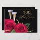 Elegante Rote Rosen und Champagne-Schalen entwerfen 100. Geburtstags-Feier-Einladungen. Fertigen Sie den Namen, Datum und alle Details Ihrer Einladungen besonders an. Zusammenpassende Karten, Porto-Briefmarken und andere Produkte verfügbar in der Geburtstags-/Geburtstags-Party Einladungs-Kategorie unseres Speichers.
