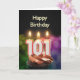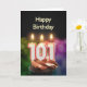 Ein Geburtstagskuchen mit Kerzen. Die Kerzen bestehen aus der Nummer 101, für einen 101. Geburtstag. Eine Geburtstagskarte für jeden geeignet.