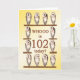 102. Geburtstagskarte. Neugierige Eugen, die sich den Kopf drehen, um dich anzusehen, und fragend "Wer hat heute Geburtstag?" Eine lustige Geburtstagskarte für jeden, der Eulen mag. Die Eulen, die gezeigt werden, sind Heuschrecken.