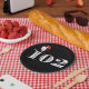 Rot, Weiß und Schwarz Party Ballon Bouquet auf schwarzem Hintergrund für 102. Geburtstag.