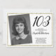 Diese hübsche weiße und goldene Einladung zum 103. Geburtstag für sie enthält ein anpassbares Foto mit einer imitierten Wasserfarben-Papiertextur und wird einen fröhlichen und feierlichen Ton setzen. Hinweis: Der Folienrand ist gedruckt und nicht echtes glänzendes Folienmaterial!