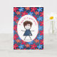 Niedliches Strichmädchen mit Haaren, roten Brillen und Denim Kleid auf einem lustigen, blühenden und denim Muster zum 103. Geburtstag.