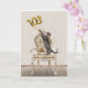Graue Tischkatze mit Goldfolie-Ballons auf einem altmodischen Stuhl zum 103. Geburtstag.