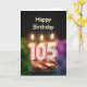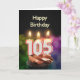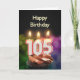 Ein Geburtstagskuchen mit Kerzen. Die Kerzen bestehen aus der Nummer 105, zu einem 105. Geburtstag. Eine Geburtstagskarte für jeden geeignet.