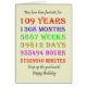 109. Geburtstagskarte, die die Jahre, Tage, Monate, Stunden und Minuten abzählt. Eine Karte, die zum Nachdenken anhält! Es wurden die Leap-Jahre berücksichtigt!